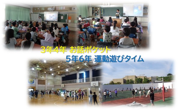 始業前の8時30分から3、4年生のお話ポケット、5、6年生の運動遊びタイムの日でした。