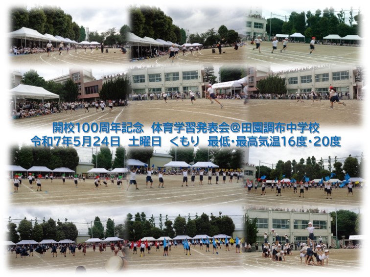 開校100周年記念の体育学習発表会は、改築工事のためお隣の田園調布中学校の校庭をお借りして開催しました。