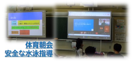 体育朝会で、来週から始まる水泳指導に向けて、安全を確保するための心構えや方法、めあてをもって学習することなどについて学びました。