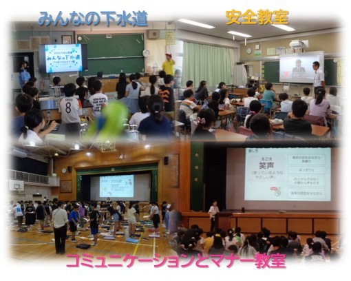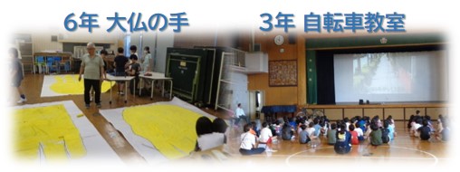 写真は3年生の情報モラル教室と、6年生の薬物乱用防止教室の様子です。