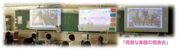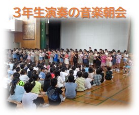 「太陽のサンバ」を全員で歌ったり、代表数名の3年生のタンバリンやカスタネットの打楽器の音に合わせてリズムをとったり、自由に体を動かしたりして楽しく歌いました。