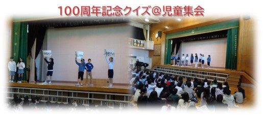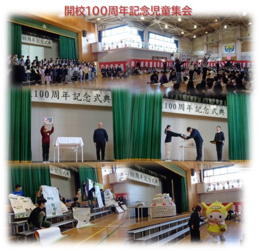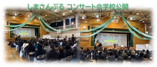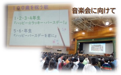 授業公開と合わせて、開校100周年をお祝いし、PTAより全児童と保護者を対象に、本校卒業生のオペラ歌手 志摩大喜さん率いる「しまさんぶるコンサート」を企画開催していただきました。