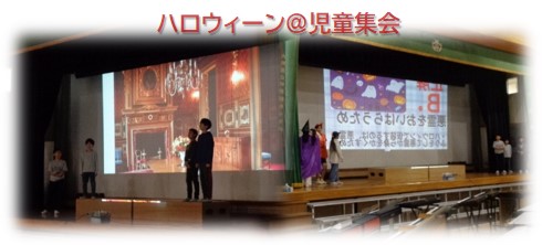 体育館の舞台の幕の間をフラフープやヘルメットが通過したり、先生方が変装をしたりして通り過ぎた後に、何が通ったかを当てるクイズでした。