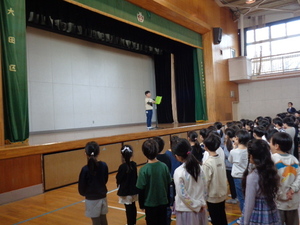 学年の先生から、生活目標の話をしたり、学年目標の振り返りや卒業式や修了式に向けてのめあてについての話をしたりしました。