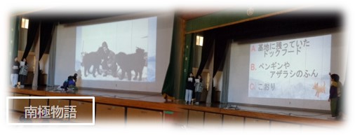 3学期初めの児童集会は「南極物語」の寸劇とクイズでした。