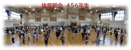 来る5月末の体育学習発表会の準備運動として全校で行います。