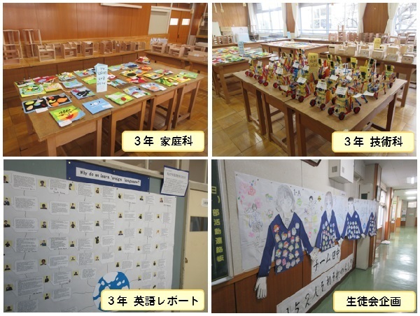 校内作品展示発表会が開催されました。美術科・家庭科・技術科で制作した作品、移動教室で作成した竹細工、英語科「外国語を学ぶ理由レポート」など、これまで学習したり、制作したりした作品が展示されました。生徒会企画では、「チーム田中(でんちゅう)!!~田中って152色の良さがあんねん~」をコンセプトに、チーム田中一人ひとりの色、個性を形にしていく作品が展示され、みな興味深く見入っていました。