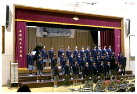 その後、生徒による指揮・伴奏で、校歌を歌い、元気に3学期をスタートさせました。