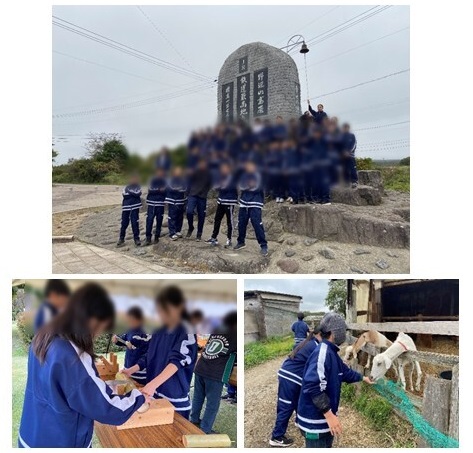 1年生は、2泊3日で、野辺山移動教室に行ってきました。中学校で初めての宿泊をともなう校外学習で、「自律共進」をスローガンに掲げ、出かけました。1日目は、飯盛山登山。山頂からの壮大な景色を楽しみ、夜はキャンプファイヤーを行いました。2日目は、滝沢牧場に出かけ、乗馬や餌やり、ブラッシングなどを体験し、その後国立天文台を見学しました。3日目の昼はバーベキューを楽しみ、ブドウ狩りを体験し、楽しい3日間の移動教室を終えました。五感(視覚・聴覚・嗅覚・味覚・触覚)をフル活用して、いろいろなものを吸収できた3日間でした。