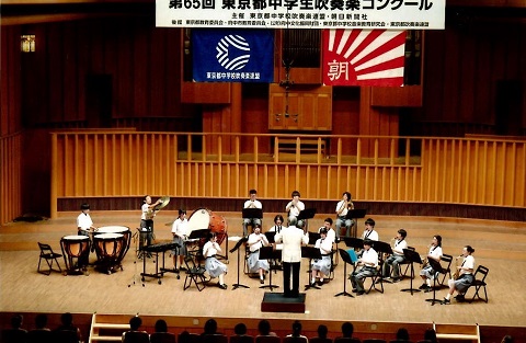 吹奏楽部が、都内519団体が参加する東京都中学生吹奏楽コンクールに出演しました。A.リード作曲 序曲「きこり」を堂々と演奏し、二年連続銀賞を受賞しました。審査員の方々からの講評では、たくさんのお誉めの言葉をいただきました。