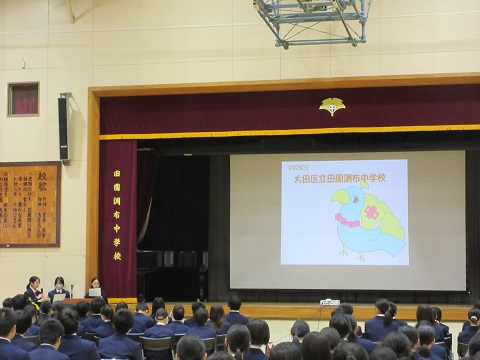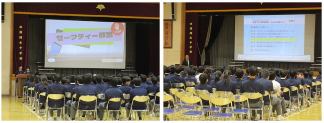 インターネットの安全な利用を学び、正しい知識をもって活用できる生徒の育成を図ることを目的とし、生徒、保護者の方を対象に、セーフティ教室が行われました。生徒会役員によるSNSなどのトラブルに関する啓発活動として、生徒会作成の動画を視聴し、その後、講師(田園調布警察署 スクールサポーター)の方より講話をいただきました。生徒たちは、熱心に聴き入っていました。