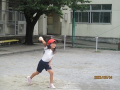 どの学年も、肘、肩、手首をしっかりと使い、投げる角度も45度を意識して投げていました。
