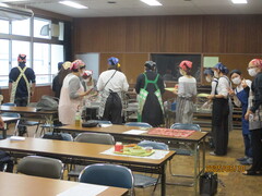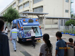 萩中小学校でも、毎年4年生が着衣泳を実施しています。本日も1,2校時に1学期最後の水泳指導として行われました。