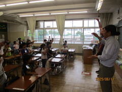 まだ運動禁止レベルには達していなかったので、8時50分からの1回目5,6年の指導を実施しました。