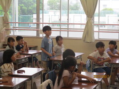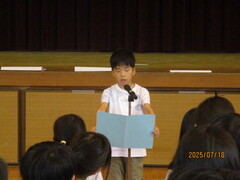 また、児童代表の言葉では、3年1組 安江 慶悟さんが、1学期の学習を振り返って成果と課題、さらには