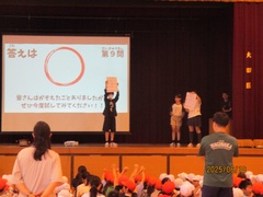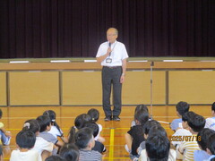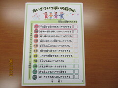 今朝の全校朝会で、今月のあいさつ目標「自分からあいさつをしよう」が発表されました。