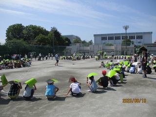 10時からの2回目1,2年生の時は、気温はまだ35℃を超えていませんでしたが、指導中に超えるだろうと判断して、