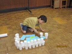 「みて、さわって、かんじて」形や色を感じたままに楽しみます。