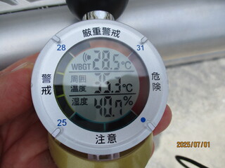 本日は、8時の時点で「気温30℃」「水温29.5℃」「WBGT28℃」と、