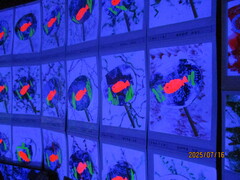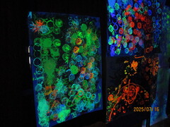そのまま鑑賞しても力作なんですが、ブラックライトに照らし出された作品は、