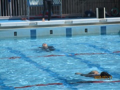 今回は、『背浮き』を練習しました。どうしても力が入ってしまって、なかなか上手に浮くことができませんでしたが、