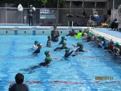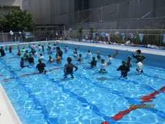 先日、水をきれいに入れ替えたこともあり、こどもたちは気持ちよく萩中小プールで楽しく泳ぎの練習をしました。