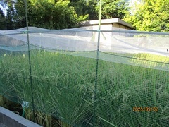 鳥よけネットも設置した萩中田んぼ