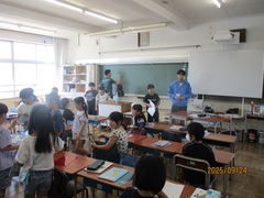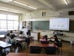 5年生の社会科では「農業・水産業・工業」について学習します。現在水産業について学習している5年生は、本日1校時の社会科の授業で、担任の嶋田先生の知り合いの『遠洋漁業経験者』の方からお話を伺いました。