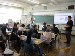 大田区では、近隣小中学校でグループを作り、小中一貫教育を実施しています。萩中小は、出雲中学校区というグループで、都南小学校、中萩中小学校と4校で連携しています。年間4回の会を開催し、今年度は、4月に出雲中学校、7月に都南小学校で、授業公開・教科ごとの分科会を行いました。