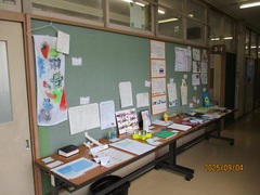 《夏休みの自由学習が展示されています》
