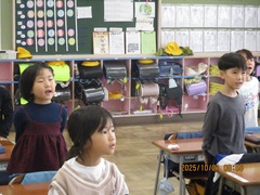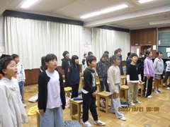 『はじまりの歌』は途中で手振りが入ります。全校児童数204名というのは、少ないかもしれませんが、気持ちのこもった合唱は、観ている・聴いている者に感動を与えます。11月8日土曜日の記念集会では、保護者の皆様にも、そんな姿をお見せできることと思います。