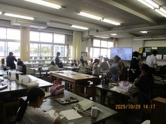 今回10月29日は、萩中小学校が当番校です。本日は水曜日ですが、全学年5時間授業で授業を公開をしました。萩中小の先生方も、学校公開で保護者・地域の皆様に参観していただく時とはまた別の緊張感をもって授業を展開していました。小中一貫教育は、分科会の協議もあるので、各校できるだけ全教科を授業することになっています。ただし、萩中小は学級数が少ないので全教科は難しく、今回は音楽と道徳と家庭科の授業は行いませんでした。