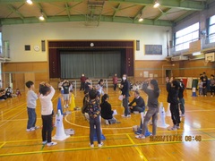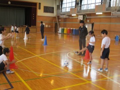 4年生はたくさんの福祉体験学習をしてきました。その最後にブラインドサッカーを体験しました。ブラインドサッカーとは、視覚障がい者向けに考案された5人制サッカーで、パラリンピックの正式種目となっています。フィールドプレイヤーはアイマスクを着用し、音の鳴るボールとガイドの声などを頼りにプレイをします。