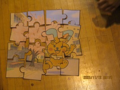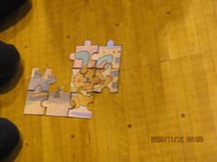 問題に正解すると、パズルのピースがもらえます。16問の正解でパズルが完成します。1年生から6年生まで、各班、協力しながらクイズに答えていました。