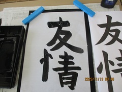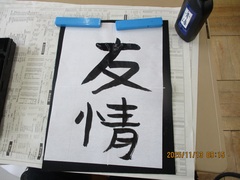 手本も見ずに書いた最初の『友情』と、指導が入り、今まで学習した原理・原則を思い出しながら意識して練習をして書いた『友情』では、これほど違うんだという字をたくさん見ることができました。
