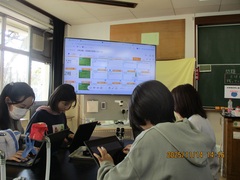 実験の確認を電子黒板で行います
