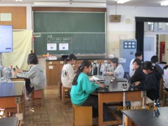 6年2組の授業では、こどもたち同士の協力、話し合いなど、さすが6年生という授業を見せてもらいました。+とは「身の回りの生活とつなげて考えたり、新たな問題を見出したりする」ことです。こどもたちは、「色が違うから同じ金属とは言えないんじゃないか」とか「金属の性質を調べてみればよい」などの+が出されていました。蒸発して出てきた物がはたして本当に元の金属なのか? これを+として、次回考えることになりました。