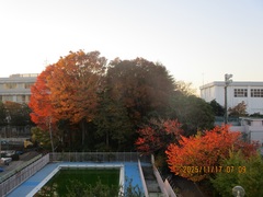 今週は、一気に冷え込むということなのでさらに美しい紅葉が見られるかもしれません。この1枚は、3階音楽室横の非常階段から撮影したものです。