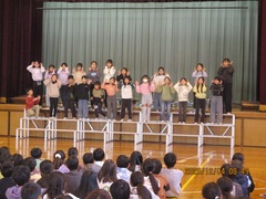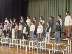 終業式では、校長先生より2学期のがんばりが話されました。気持ちの良いあいさつができるようになったこと、70周年の行事を立派にやり遂げたことなど、改めてお褒めの言葉をいただきました。児童代表の言葉は、2年生の倉石さんと行川さんが発表しました。2人ともがんばった学習のこと、3学期または3年生でがんばりたいことを、大きな声で堂々と発表することができました。最後は、元気に校歌を歌って終業式を終えました。