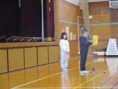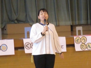 最後に2学期をもって萩中小を辞められる、S研専門員、牧瀬未慧先生からのお話がありました。牧瀬先生は、3学期から他の学校で勤務することになっています。今まで、本当にお世話になりました。