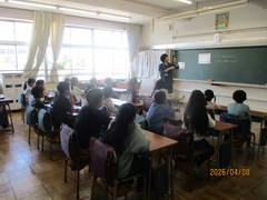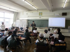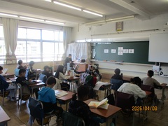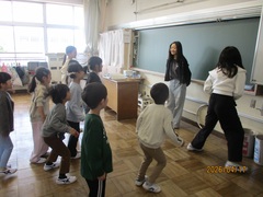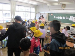 令和8年度最初のたてわり班遊びが行われました。今回は1回目なので教室で遊びました。6年生が1年生を迎えに行って、それぞれの集合教室で、班長が計画した「バクダンゲーム」や「ハンカチ落とし」、テレビで人気の「あたまおしりゲーム」など、楽しそうに遊んでいました。