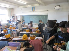 4年生は、ヘルメットの確認など、身の回りの整理整頓を行っていました。
