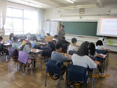 教員室に来た時の説明は、「ここは教員室です。先生たちがお仕事をする部屋です。」とても誇らしげに説明していました。これを聞いた1年生が、来年は同じように説明をするのでしょうね。学校探検にも萩中小の伝統が受け継がれています。