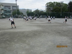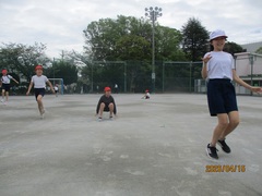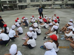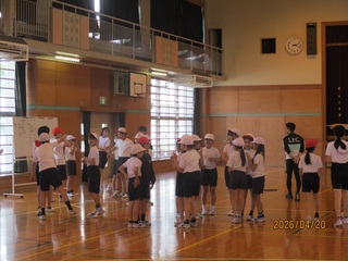 その前に5年生は学年合同で“運動開き”を行いました。普段から休み時間に、サッカーや天下、鬼ごっこなどで元気いっぱい動き回っている5年生は、さすがに体育でも機敏な動きを見せていました。