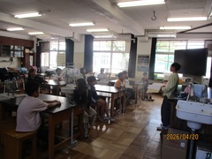 2年生20人に対して、1年生は46人と、倍以上の人数です。1人の2年生が2,3人の1年生を案内することになります。これは2年生にとって重大な役目となります。どこの教室をどのように説明しようか、1年先輩の2年生が一生懸命考えていました。学校案内(1,2年合同学校探検)は4月28日(火)の1,2校時に行われます。