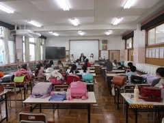 登校班で登校した後は、6年生のお手伝いのもと、まずは身支度です。ランドセルから教科書や連絡帳などを取り出し、先生の指示に従って教科書を前に出します。空になったランドセルはロッカーにしまいますが、自分のロッカーがどこにあるのか?、6年生に誘導されながらがんばっていました。みんなそろって、朝の挨拶ができたのは8時25分を過ぎていました。どんなことにも、最初は時間がかかるものです。今日より明日、明日より明後日、どんどん慣れて早くなっていくこどもたちの姿を楽しみにしています。それまでは、しばらく6年生の皆さん、よろしくお願いします。