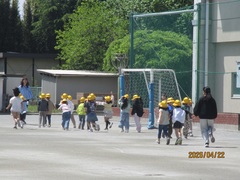 1年生を迎える会が終わると、いよいよ1年生が休み時間に校庭遊びデビューとなります。本日中休みに、黄色い帽子をかぶった1年生が元気いっぱいに校庭で走り回る姿が見られました。24日金曜日には、2年生の案内による「学校たんけん」も行われる予定です。