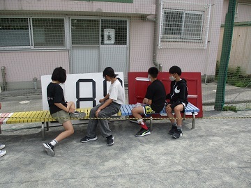 高学年は、団体競技で行うムカデ競争の練習をしていました。