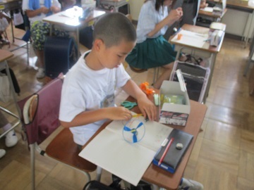3年生では豆電球を使っていましたが、今回は初めてモーターを使いました。