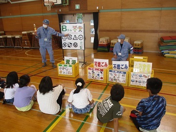 その後、分別を実際にやってみました。子どもたちは、職員さんの話をよく聞いてきちんと分別できていました。
